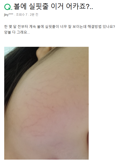 볼 실핏줄이 고민이라면 먼저 피부 자극을 최소화하고, 충분한 보습과 자외선 차단을 해주는 것이 중요합니다. 그래도 해결되지 않으면 피부과 진료를 받아보는 걸 추천해요!